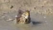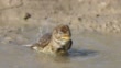 A Corn Bunting [Emberiza calandra] bathing in a puddle. Picture taken in Swindon, Wiltshire, England on the 9th of July 2022.