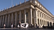 Corner of Grand Theatre de Bordeaux by Victor Louis, with trishaws in front of, in the area Hotel de Ville