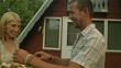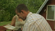 CU, TU, TD, Couple barbequing shish kabobs outside holiday cabin, Fish Creek, Wisconsin, USA - HD stock video