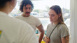 A Multiracial man and his non-binary partner take a look at the menu while placing an order with the owner of a Mexican restaurant.