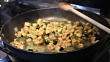 Courgettes and prawns cooked in a pan - HD stock video