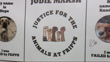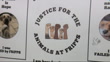 Close up shots campaigners with banner 'Justice for the animals at Fripps.'