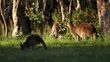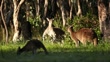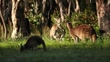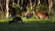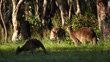 In the heat of the afternoon, a male Western Grey kangaroo (Macropus fuliginosus) stands beneath a gum tree, gathering dry leaves with his forepaws. Common across southern Australia, the Western Grey kangaroo is a familiar sight - but this one sets himself apart. With quick, deliberate strokes, he brushes the leaves across his broad chest, the muscles beneath his grey-brown fur rippling with each movement. Nearby, a group of females grazes, their ears flicking in his direction. His strong body stands against the bush, a silent proclamation of strength, as he waits to see if his display will catch their attention.