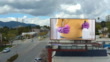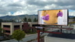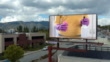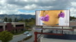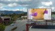 A Covid19 billboard with a middle aged woman in rubber gloves cleaning a counter. The video was composited.