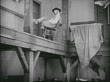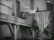 B/W 1924 cowboy (Ben Turpin) nearly falling off of ledge while sleeping + leaning on chair - stock video