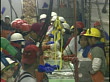 ZO, MS, Crab pieces moving slowly down conveyor belt in crab processing plant, workers working on either side of belt, Dutch Harbor, Unalaska, Alaska, USA - stock video