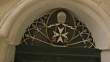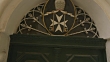 Crane shot over a door frame depicting the Maltese Cross. - HD stock video