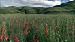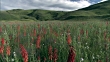 Crane up over meadow of red hot poker (Kniphofia sp.) flowers, Kitulo, Tanzania - HD stock video