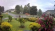 Crape Myrtle In Bloom And CCTV Security Camera Point Of View Of Car Driving And Rain Falling In A Neighborhood In The Suburb Of Atlanta - 4K stock video