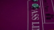 Craps dealer pushes dice over and a craps player picks them up, ready to throw.