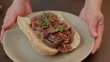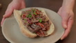Creamy pepper rump steak baguette sandwich - 4K stock video