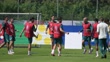 HASEWINKEL, GERMANY - JUNE 25: Cristiano Ronaldo (C) of Portugal speaks with team members during a training session ahead of UEFA Euro 2024 Group F football match against Georgia in Marienfeld, a district of Harsewinkel City on June 25, 2024 in Harsewinkel, Germany. (Footage by Sascha Schuermann/Getty Images)