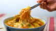 Cropped hand holding soup noodle - HD stock video