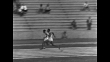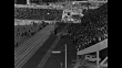 Crowd in stands at Olympic Stadium for the Bolivarian Games, pan across to track / official fires starting gun / runners exchange batons in men's 400-meter relay / shots of three more baton exchanges / crowd watches / contestants run towards camera, Peruvian team winning / crowd stands and applauds / people congratulate Peruvian runner / Note: exact day not known