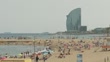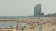 BARCELONA, SPAIN - JULY 17: A crowd of people swim, sunbathe, walk, play and work out at the beach on July 17, 2023 in Barcelona, Spain. An area of high pressure, named Cerberus after the underworld monster from Dante's Inferno, is making its way across the country, leading 13 of the 17 autonomous communities to be categorized as either extreme risk (red alert), significant risk (orange alert) or (yellow alert), with some places recording temperatures of 43°C. With an ongoing drought and heatwave credited to climate change, extreme weather has already affected people in Spain, WHO reported in 2022 more than 4,000 excess deaths due to heat stress. (Footage by Cesc Maymo/Getty Images)