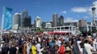 AUCKLAND, NEW ZEALAND - MARCH 13: Crowds flock to the Viaduct Basin and Americas Cup Village during the America's Cup Race #5 and #6 between Emirates Team New Zealand and Luna Rossa Prada Pirelli Team on Auckland Harbour on March 13, 2021 in Auckland, New Zealand. (Photo by Phil Walter/Getty Images)