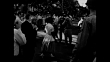 Crowds lining streets, watching students arrive at school, angry while people.