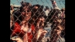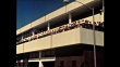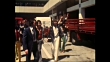 Crush of fans behind wire fence chant and sing "we want Sherbet" / police officer stands by pan to fans on terminal balcony / Sherbet band members walk and wave to fans - incl Daryl Braithwaite, Alan Sandow in suit and tie, Garth Porter, bands walks past screaming girls / Tony Mitchell near fence - smiles to camera / Daryl Bratihwaite walks past fence / cutaway press cameraman / hand shakes with girls / Sherbet shakes hands with girls behind fence in background / ? signs autograph / Braithwaite with rose in teeth in front of girls