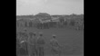 Cuban aviator Antonio Menendez Pelaez, wearing uniform shirt with epaulets, leather helmet, and goggles, poses with a group of Cuban people and servicemen; SOT Pelaez with heavily accented explanation of his route to Spain / military officers pose with an airplane behind them / Pelaez with Col. Angel Gonzalez, Cuban constitutional Navy Chief; he greets former President Jose Barnet and others / Esther Gonzalez, daughter of Col. Gonzalez, watches as an officer breaks a bottle on the propeller of a plane, people applaud, and the officer turns her around to face the camera; she speaks and kisses her father / Numerous people stand on the field watching Pelaez's plane taxi and take off