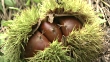 Zoom in to cupule containing nuts; medium shotSpider lilies, rural scenery, chestnut grove /Nose, _saka prefecture