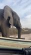 A curious bull elephant approached a safari vehicle at Tembe Elephant Park in KwaZulu-Natal, South Africa, recently posted footage shows, giving onlookers an incredible experience as it used its trunk to examine the roof. Rhys Scott-Dawkins, who operates Endless Summer Tours, captured this footage and told Storyful he noticed the 'massive' bull in the distance and decided to stop the vehicle. 'We switched off and he [the elephant] just decided he wanted to come check what we were all about. He approached and I actually leaned right back as it got super intimidating, but I managed to keep the camera still,' Scott-Dawkins told Storyful. 'Then we just had the most epic encounter with a wild elephant ever.' Speaking directly into the camera, Scott-Dawkins said he had 'never been that close to a wild elephant in my life.' (Footage by Rhys Scott-Dawkins/Endless Summer Tours/Storyful via Getty Images UGC)