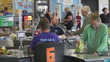 Customers at the checkout at Aldi supermarket, includes being served by staff and self service checkouts (BBC News 6pm Bulletin - 09/09/2024 - AEXZ288W)
