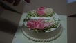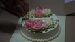 Cut Birthday Cake vanilla with Whipped Cream on white paper - HD stock video