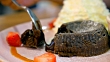 Dolly Shot:Cutting a chocolate lava cake dessert - 4K stock video