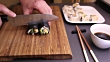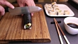 HD1080p: Cutting vegetarian futomaki sushi roll with omelet (tamago) and cucumber