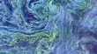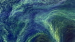 Cyanobacteria bloom. False-colour composite satellite image of what appears to be a large bloom of cyanobacteria (blue-green algae) swirling in the Baltic Sea. Satellite images alone cannot say definitively that whether or not this bloom contains cyanobacteria - analysis of ocean water samples would be required to confirm it. Cyanobacteria are photosynthetic marine bacteria and an important constituent of plankton. Blooms like this flourish in the Baltic Sea during summertime, when there is ample sunlight and high levels of nutrients. They can cause an oxygen-depleted 'dead zone' where other organisms cannot survive. Imaged by the Operational Land Imager (OLI) on the Landsat 8 satellite, on 11th August 2015