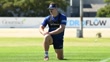 AUCKLAND, NEW ZEALAND - MARCH 19: Dalton Papali’I of the Blues stretches of the Blues run through drills during a Blues Super Rugby training session at Blues HQ on March 19, 2024 in Auckland, New Zealand.(Footage by Hannah Peters/Getty Images)
