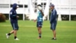 AUCKLAND, NEW ZEALAND - JUNE 04: Dan Carter talks with Blues head coach Leon MacDonald at Blues HQ on June 04, 2020 in Auckland, New Zealand. Carter is joining the Blues for the 2020 Super Rugby Aotearoa Competition as injury cover for Stephen Perofeta. (Footage by Phil Walter/Getty Images)