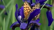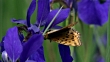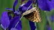 Dark green fritillary butterfly feeds from iris setosa, Changbaishan National Nature Reserve, Jilin Province, China (Core number: NBRY948A)