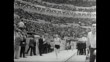 CU Dave Patrick of Villanova as he takes the lead in the indoor track race at the NCAA Track Championships in Detroit / crowd applaud as he wins the half mile race / CU Patrick after race talking to reporters / man shoots starter pistol and the mile race begins / Jim Ryun passes Sam Brier / Ryun wins.