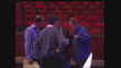 David Soul and Paul Michael Glaser at rehearsals for the 2003 National Television Awards; ENGLAND: London: Royal Albert Hall:INTGVs David Soul (actor) and Paul Michael Glaser (actor) along in conversation with scripts / wide shots as both along to stage / GVs both on stage talking with Trevor McDonald (reporter)