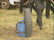 MS Ditto being used as a wicket in improvised game of cricket, policeman misses ball with truncheon,bowled out