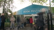 SPEEDED UP SEQ People entering and exiting 'Edinburgh Festival Books Festival' marquee / People looking at books on sale in bookshop