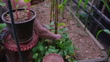 Grandmother farmer picking fresh and organic veggies from her gardem