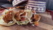 Delicious Shrimp street tacos with sauce on a corn tortilla - 4K stock video