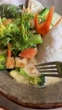 Delicious Thai green curry with rice and fresh vegetables - 4K stock video