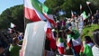 LISBON, PORTUGAL - MARCH 1: (EDITORS NOTE: audio/music licensing is not included.) Demonstrators chant and dance as they hoist portraits of Reza Pahlavi, the Shah's son, and fly Israeli, American, and Iranian flags while celebrating outside the Iranian embassy on March 1, 2026 in Lisbon, Portugal. Iran's Supreme Leader, Ayatollah Ali Khamenei, was confirmed killed after the United States and Israel launched a joint attack on Iran on February 28. Iran retaliated by firing waves of missiles and drones at Israel and targeting U.S. allies in the region. (Footage by Horacio Villalobos/Getty Images)