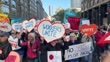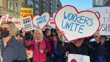 NEW YORK, NEW YORK - MAY 1: Demonstrators hold up hearts that reads "Workers Unite" as thousands of people participate in a rally and march on May Day in Manhattan on May 1, 2025 in New York City. The march, which went on for dozens of blocks and included over ten thousand people, was against the current Republican administration and its policies on immigration, the environment, science, and other issues. Throughout the country, protests against Donald Trump and his administration have slowly been growing. (Footage by Spencer Platt/Getty Images)