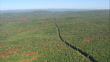 AERIAL Dense fall foliage in heavily wooded forest cut through with road / Amherst, Massachusetts, United States - HD stock video