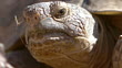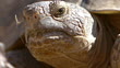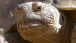 Desert Tortoise (Gopherus agassizii) extreme closeup of face, suns itself in the Mojave Desert