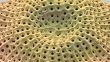 Diatom. Coloured scanning electron micrograph (SEM) of a Triceratium sp. diatom. The diatoms are a group of photosynthetic, single-celled algae containing about 100, 000 species. Magnification: x800 when printed at 10 centimetres wide.