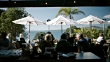 Diners at restaurant on Takapuna Beach - 4K stock video