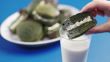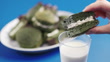 Dipping mugwort Choco Pie into milk / South Korea - HD stock video