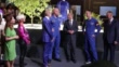 SCHOENEFELD, GERMANY - JUNE 22: (L-R) ESA Director Josef Aschenbacher, astronaut Alexander Gerst, German Chancellor Olaf Scholz, astronaut Matthias Maurer and Michael Schöllhorn stand and interact at the ESA booth on the first day of the ILA Berlin 2022 air show on June 22, 2022 in Schoenefeld, Germany. This year's is the first ILA to be held since 2018. It will run from June 22 through June 26. (Footage by Christian Ender/Getty Images)