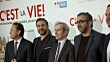 Directors Eric Toledano and Olivier Nakache and French Ambassador in Spain Yves Saint-Geours attend the 'C'Est La Vie' premiere at the Francoise Institut