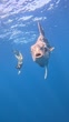 Diver Dwarfed by Ocean Sunfish Off Mexico Coast